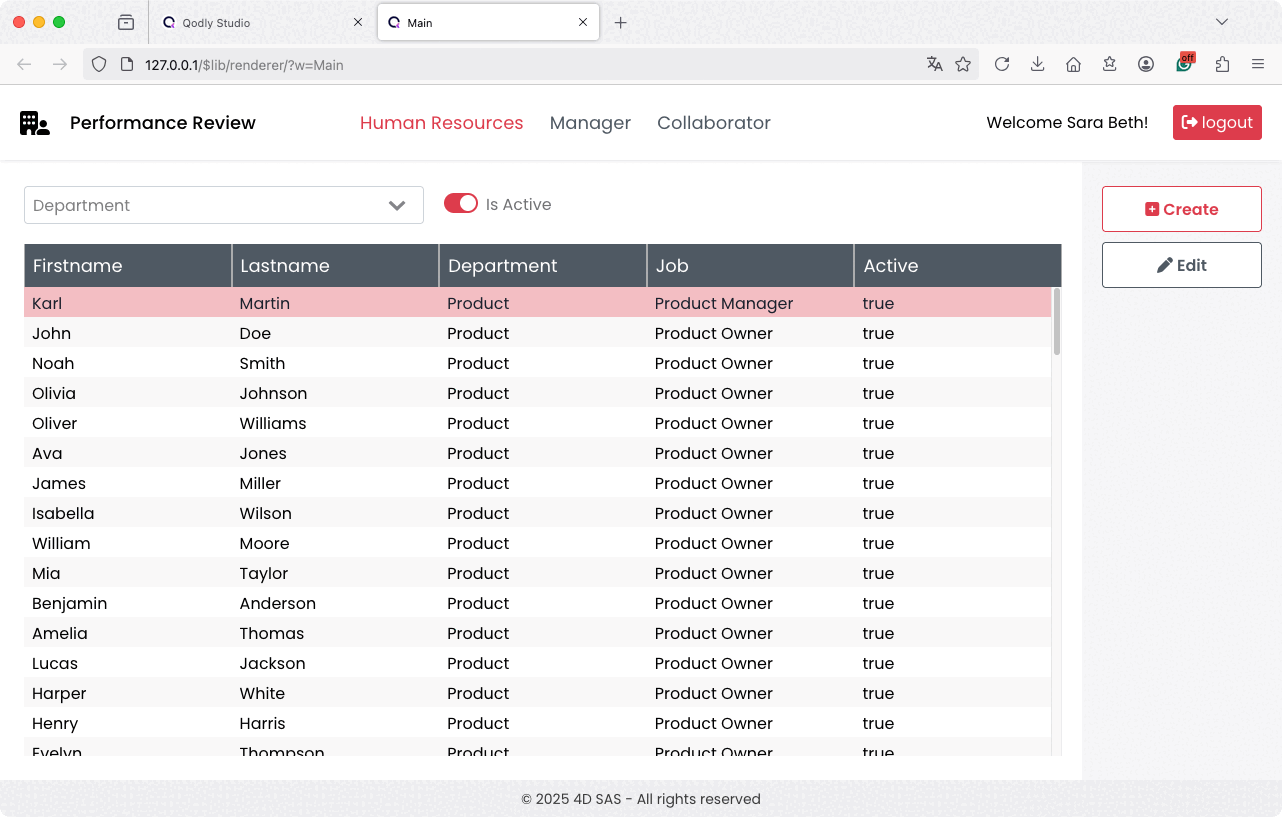 V některém z příštích příspěvků na blogu se budeme zabývat různými možnostmi použití CSS v aplikaci Qodly Studio. Pokud se nemůžete dočkat, třída CSS použitá v aplikaci Performance Review se nazývá „DataTable„.