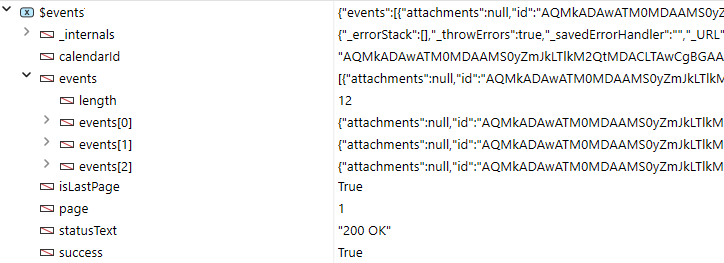 var $events:=$office365.calendar.getEvents({calendarId: $myCalendar.id; top: 100; startDateTime: $startDate; endDateTime: $endDate})