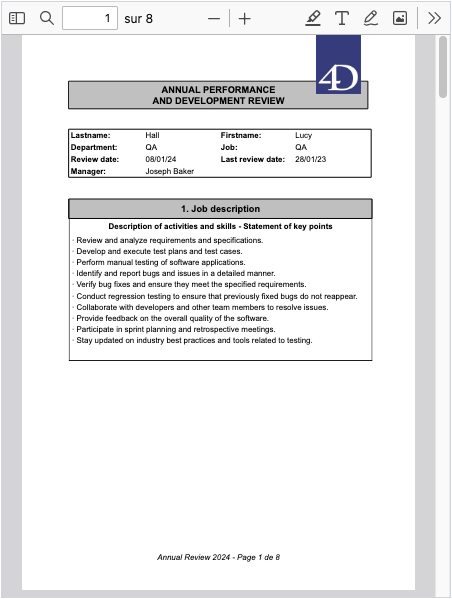 Combinando 4D Write Pro y 4D Qodly Pro, puede automatizar la generación de documentos dinámicos fusionando plantillas predefinidas y datos en tiempo real. Este enfoque ofrece muchas ventajas: