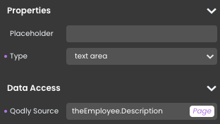 - Définissez la source Qodly sur « theEmployee.Description ».