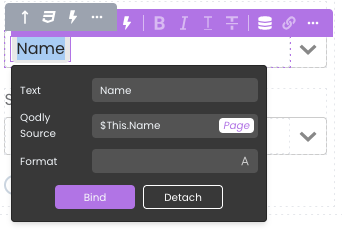 - Lier l’entrée de texte à la source « $This.Name ».