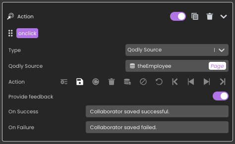 4D Qodly Pro simplifie la création, l’enregistrement et la suppression d’enregistrements en fournissant des actions standard intégrées, similaires à celles de 4D.