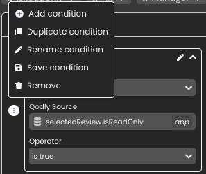 Saisissez simplement la formule : « selectedReview.isReadOnly is True ».