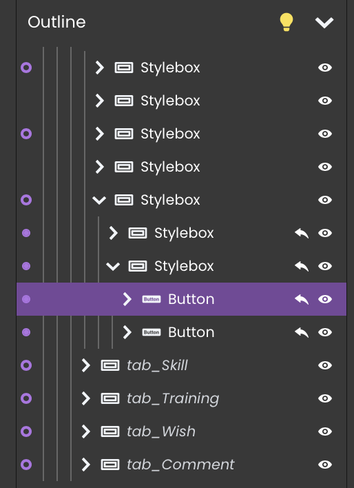 Si un bouton est caché par inadvertance, utilisez le panneau Outline de Qodly Studio pour localiser et corriger la configuration.