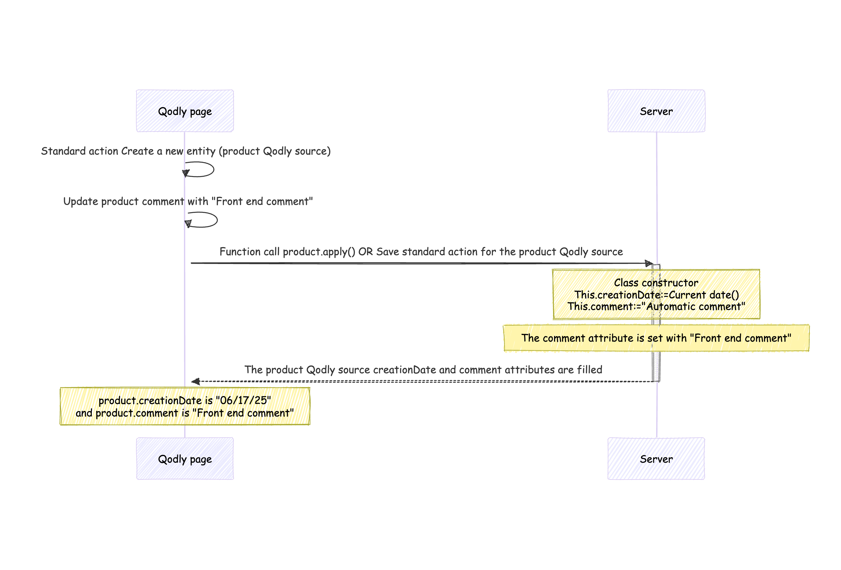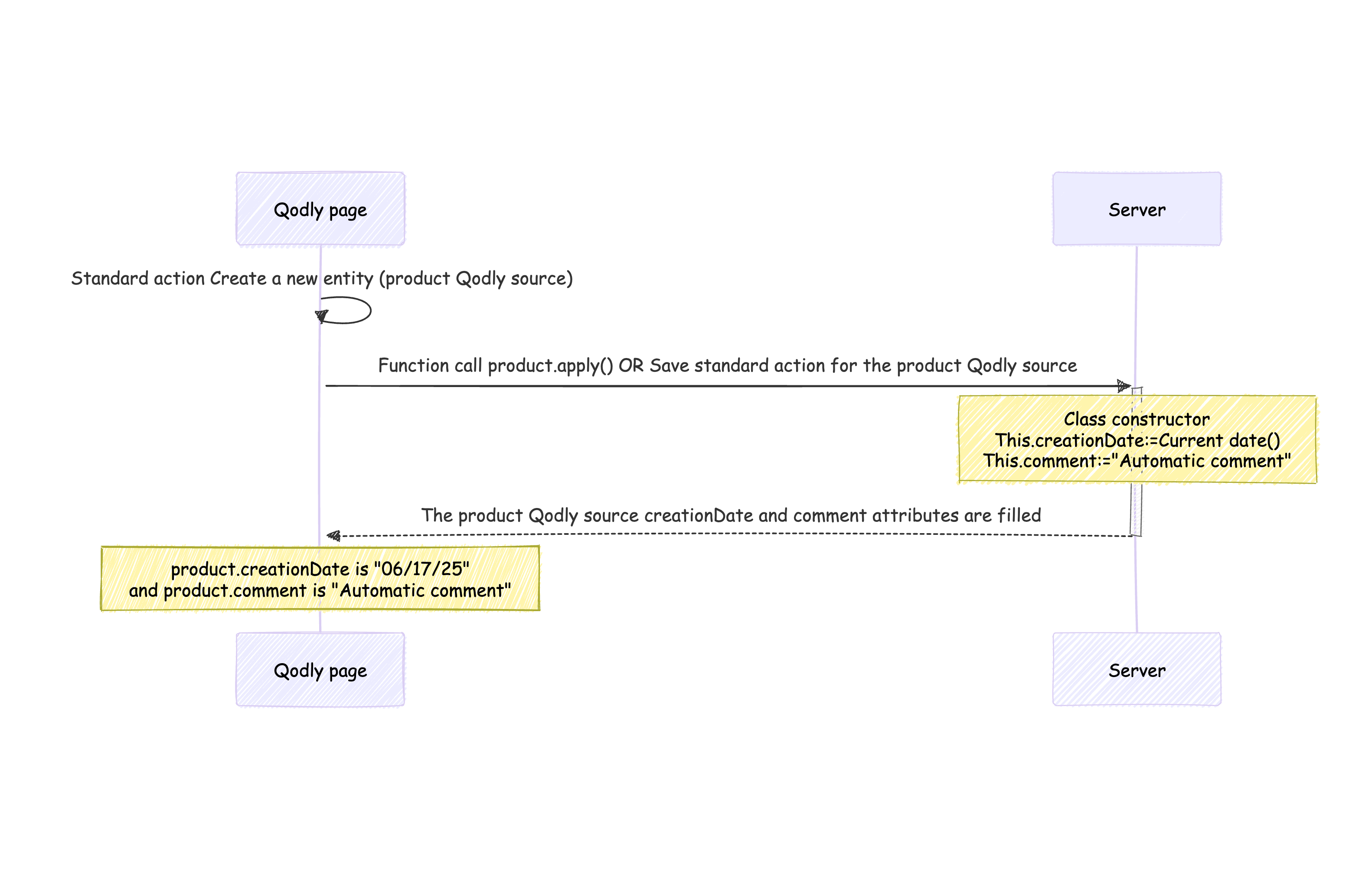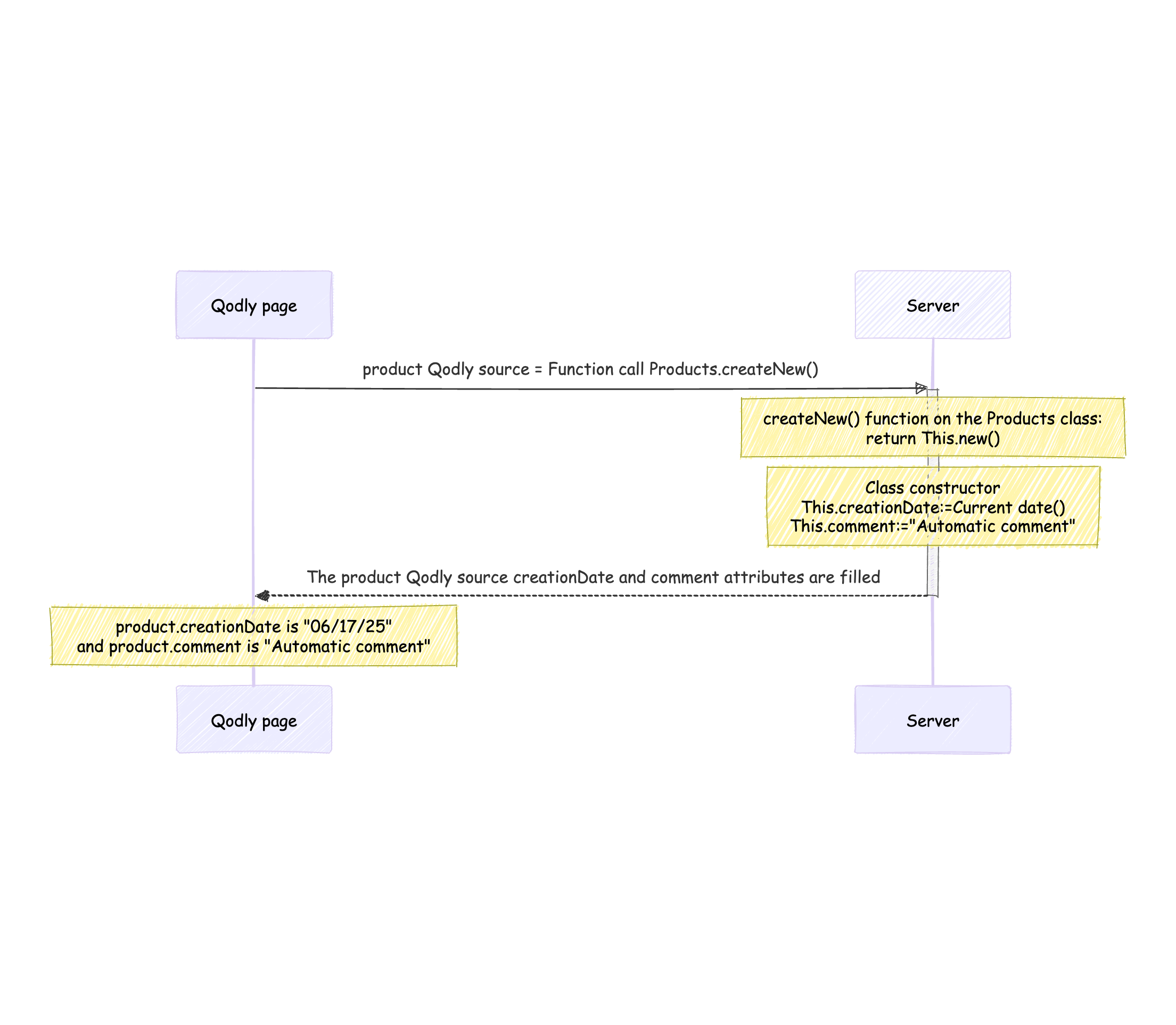 En revanche, si l’entité est instanciée par une fonction côté serveur, le constructeur s’exécute immédiatement sur le serveur. La source Qodly renvoyée (entité) comprendra les attributs initialisés par le constructeur.