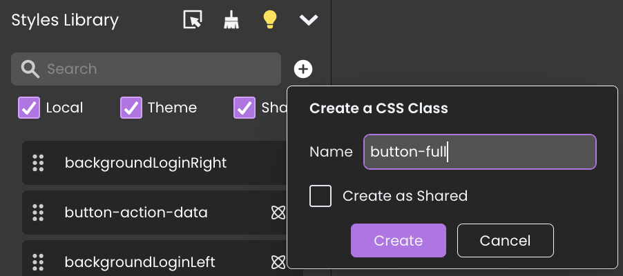 In Qodly Studio, applicare questo stile utilizzando la classe “button-full” sui pulsanti.