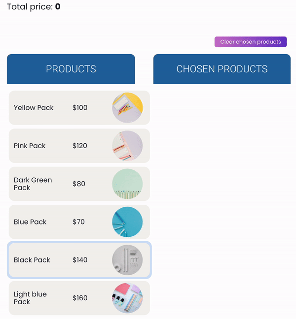 以下はそのコードです。このLimitReached ステートは、ユーザーが商品を選択できないようにします。