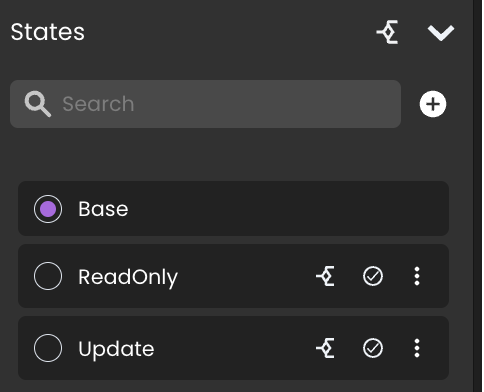 しかし、ページステートとは一体何なのでしょうか?ステート(状態)とは、ベースページと呼ばれるオリジナルのQodlyページとどのように異なるかによって定義され、これによってユーザーのインタラクションに基づいてUIエレメントを条件付きで表示したり、あるいは異なるスタイルを適用したりすることができます。そして、すべてはあなたのUIのオリジナルのレイアウトであるベースページから始まります。