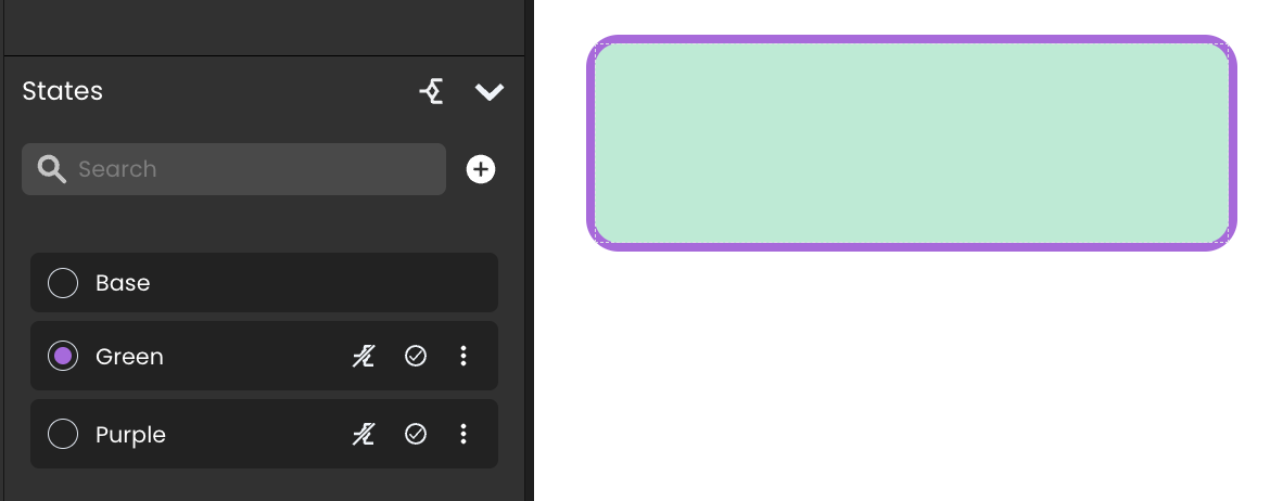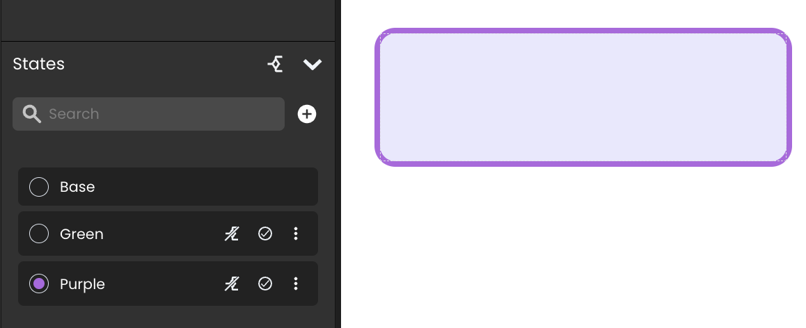 また、ベースページの透明な背景の代わりに紫色の背景を持つ、Purpleのステートが作成されています。