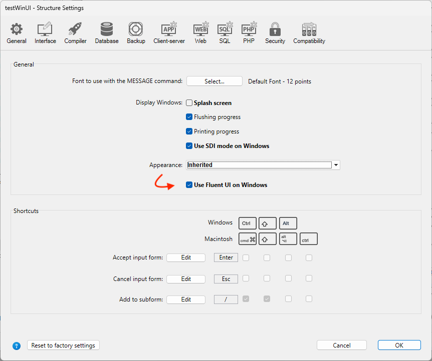 First, you need to install the Windows App SDK version 1.7.3. If the SDK is not installed, 4D will automatically display the form using the classic style without generating errors.